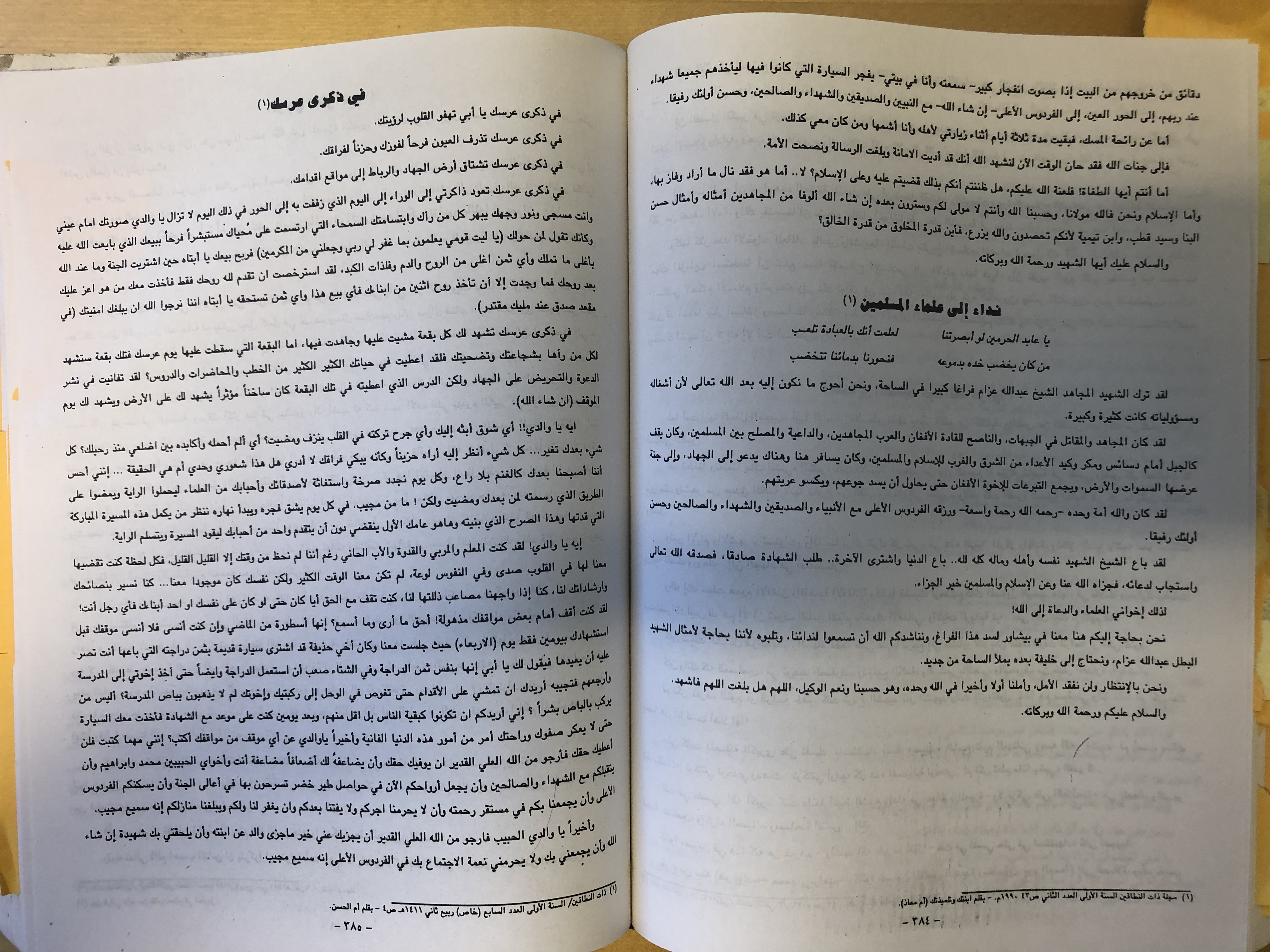 41. Abdallah Azzam, ‘shukr ‘ala tu‘az’ [Thank you for the Condolences], Luhayb al-Ma’raka 34 (14 January 1989), in mawsu‘at al-dhakha’ir, vol. 1, p. 798; Abdallah Azzam, fi khidamm al-ma‘raka [In the Heat of Battle], 9 September 1989, in ibid., vol. 2, p. 2.