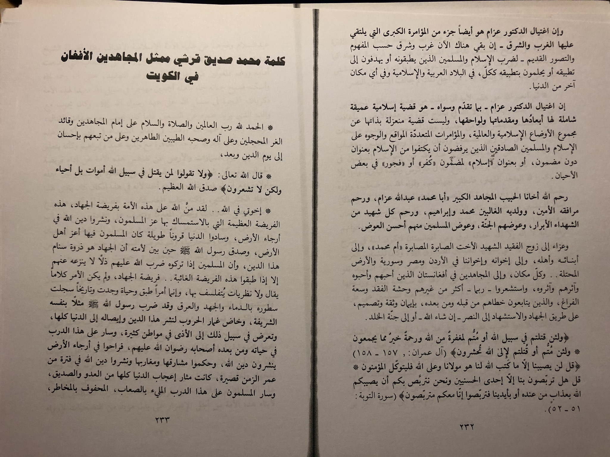 Jihad] (Peshawar: Ittihad Talabat al-Muslimin, 1983), p. 58 (Minbar version).